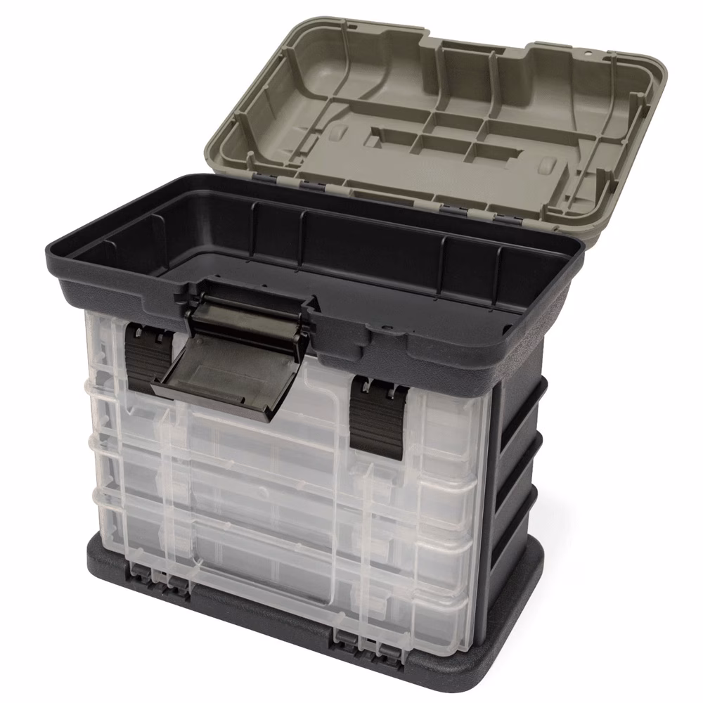Questo resistente sistema di scatole da pesca consentirà una organizzazione perfetta di esche e terminal-tackles. La cassetta da pesca Zebco TROPHY TACKLE BOX STATION include quattro scatole di plastica che possono essere inserite o rimosse a seconda della necessità. Ogni scatola include dei separatori per la perfetta organizzazione del materiale da pesca. L’intero sistema è dotato di una robusta maniglia per il trasporto e di un ampio contenitore con coperchio nella parte superiore.